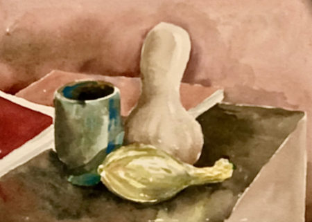 While Walter’s primary medium was the woodcut, like many artists, painting - for which he first won the John Wanamaker Gold Medal in a city-wide art competition in New York City at the age of 12 - was his first medium. Watercolors in particular afforded Ferro a relief from the laborious processes involved in woodcutting and engraving, as well as the freedom to use color spontaneously. As with his other work, he employed variably both realism and abstraction. Intricately attending to the details of an awning at dawn, the vertical lines on the side of a barn, or a rough stone wall bordered by snow, many of his landscape, village, and agricultural scenes remain those for which he was best known. Still, in the abstracted works there reside an equally fervid use of bold color, which with the introduction of additional water he even allowed at times to run or smudge, a liberality not proffered in the assiduousness of his woodcut process.